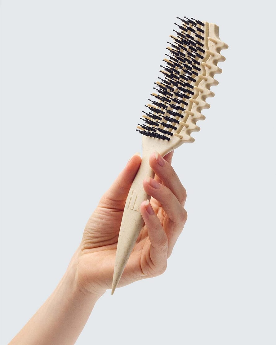 Med sit ergonomiske, timeglasformede håndtag ligger denne børste til krøller godt i hånden og giver et sikkert greb under stylingen. Håndtaget er designet til mere end bare et godt greb: Det fungerer både som et præcisionsværktøj til skilninger og sektionering og som et heatless curling tool, så du kan forme og definere enkelte krøller helt efter ønske. Håndtaget er fremstillet af 40% hvedestrå. Det gør børsten til en praktisk hårbørste til krøller, der giver flotte resultater hver gang.