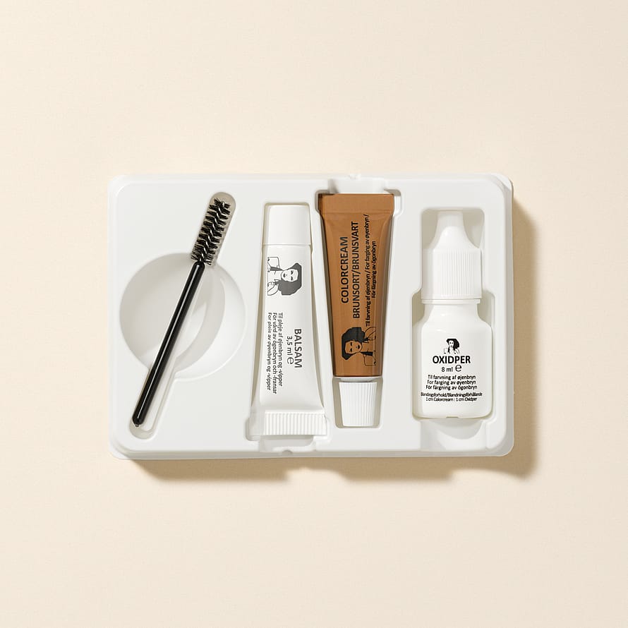 Pakningen indeholder nok til ca. 20 farvninger og indeholder desuden en nærende balsam, som plejer dine bryn efter farvning.