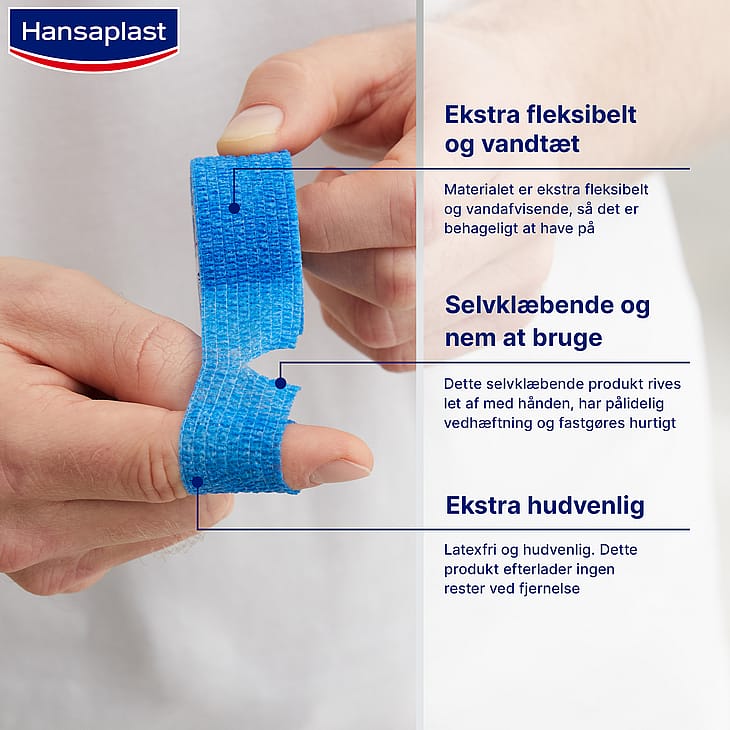Hansaplast Finger Cohesive er en selvklæbende fingerbandage, der er særlig velegnet til beskyttelse og behandling af små sår og revner på fingrene.