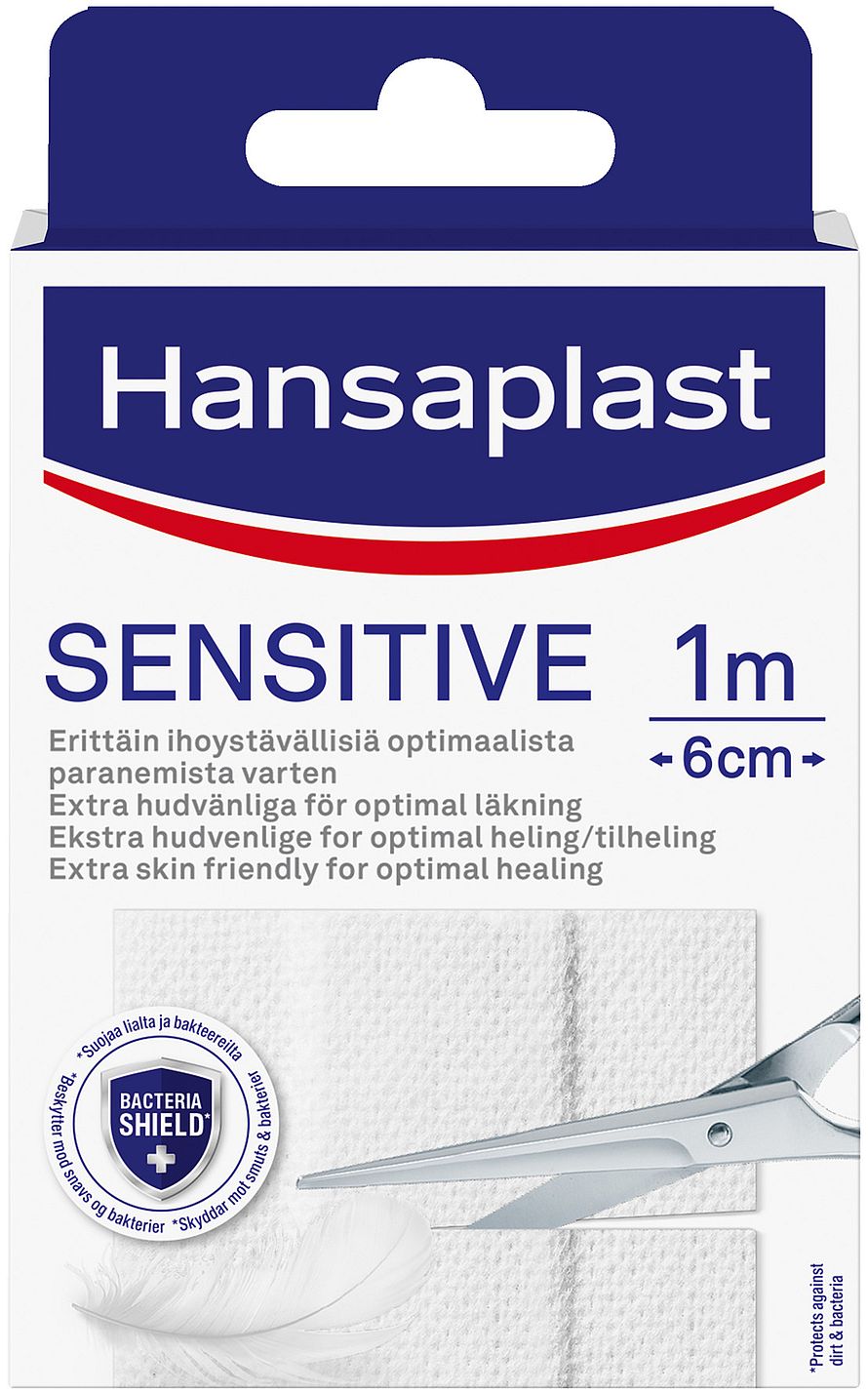 Hansaplast Sensitive plastre er meget hudvenlige og egner sig til tildækning af alle slags små sår.