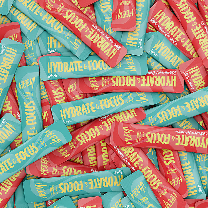 Heey! Hydrate & Focus fås både som genlukkelig pose til daglig brug og som praktiske stick packs, klar til farten. Stick packs er perfekte til tasken, arbejdet, træningen eller rejsen – bare riv op, bland med koldt vand og drik. Ingen opmåling. Ingen spild.