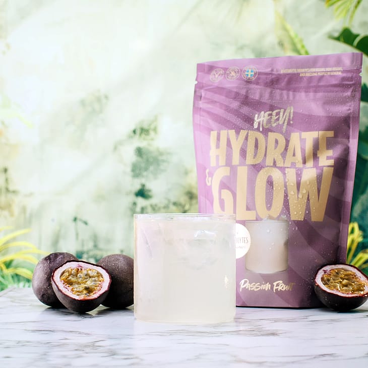 Kosttilskud til voksne. Elektrolytmix Heey! Hydrate & Glow er et elektrolyttilskud - kombineret med skønhedstilskud i en Dual Action Formula. Indeholder sødestoffer.