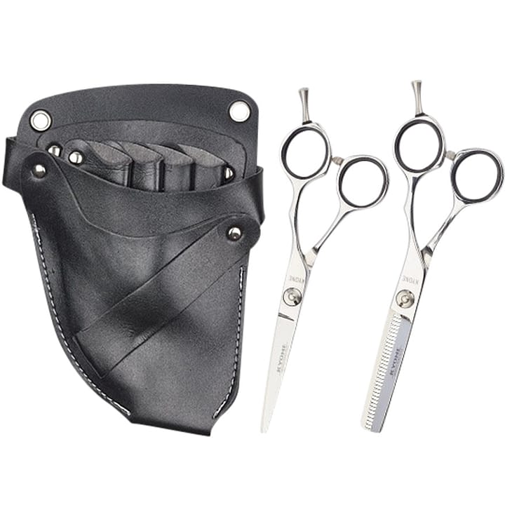 Sakse sæt med en frisør- og fortyndingssaks der er perfekt til nybegynderen.Begge sakse er højrehåndsakse og har et ergonomisk greb, så den ligger afbalanceret og kontrolleret i hånden.