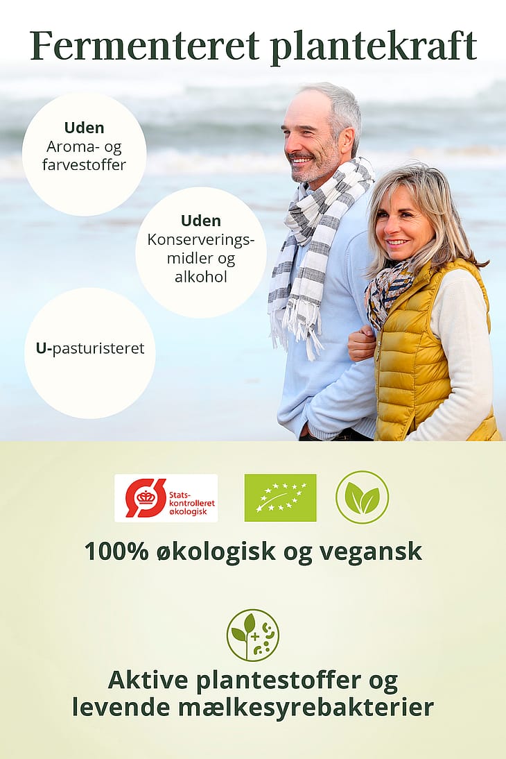 Mælkebøtteekstraktet er fermenteret med levende mælkesyrebakterier. Man får derfor et 2-i-1 produkt - de levende mælkesyrebakterier (probiotika) og plantestoffer.