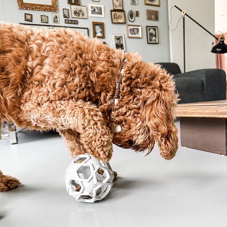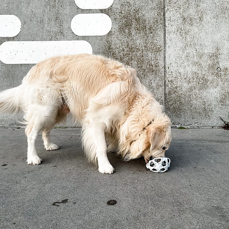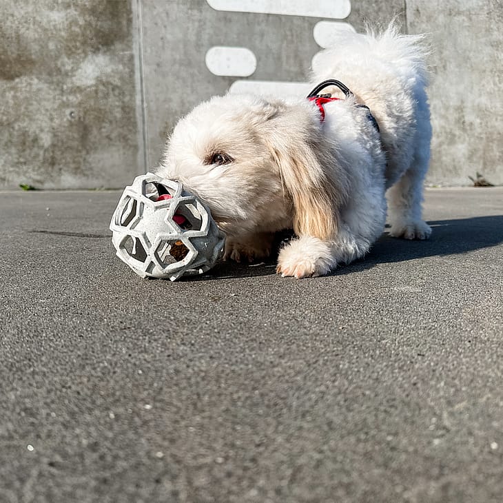 Bolden har store, stjerneformede huller, hvilket gør den perfekt til aktivering med større snacks.