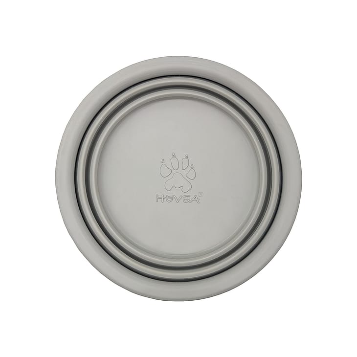 HEVEAs bløde, foldbare vand/foderskål i 100% naturgummi passer perfekt i lommen eller tasken, når du og din bedste ven er på farten.