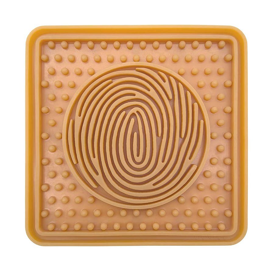 Måtten er udformet med det karakteristiske HEVEA-fingeraftryk, omgivet af et mønster af ”knopper” og "fuger" med forskellige teksturer og højder, der giver din bedste ven mest mulig glæde og udfordring, når den skal slikke lækkerierne af. Vi anbefaler at bruge en smørbar pate/postej eller lignende.