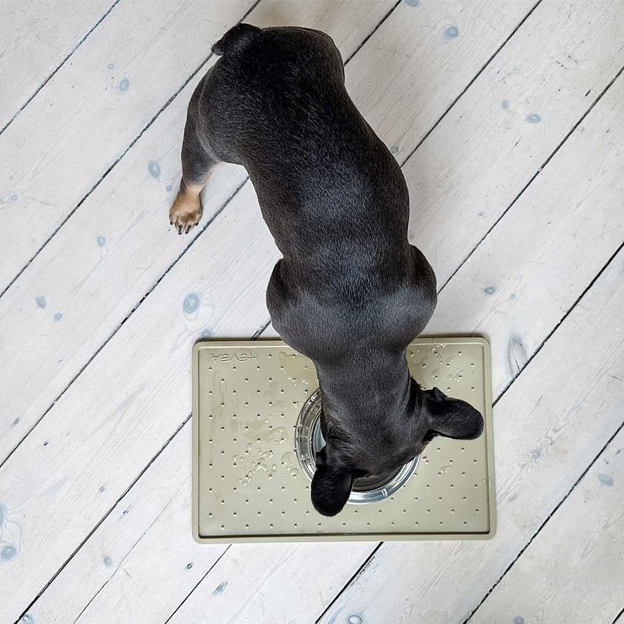 Måtten har en non-slip overflade, som sikrer, at din bedste vens skål bliver stående samme sted, og kanten hjælper med at holde eventuelt spild inden for måtten.