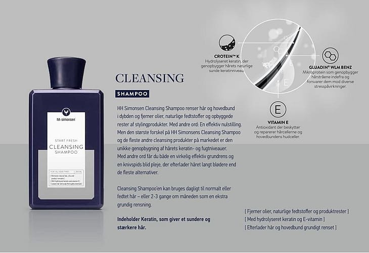 Med andre ord: En effektiv nulstilling. Men den største forskel på HH Simonsens Cleansing Shampoo og de fleste andre cleansing produkter på markedet er den unikke genopbygning af hårets keratin- og fugtniveauer.