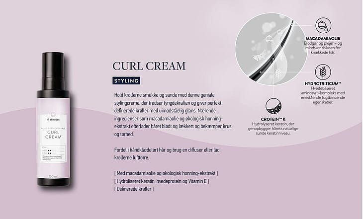 | Egenskaber | Giver glans, Fugtgivende, Definerer krøller, Anti Frizz |