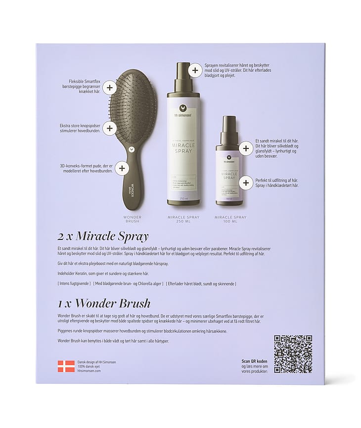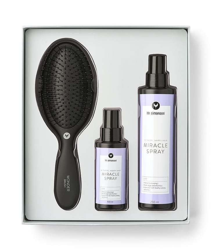 Oplev øjeblikkelig glans og pleje med Miracle Spray – en effektiv leave-in hårspray, der blødgør, fugter og beskytter håret uden at skulle skylles ud. Den er rig på plejende ingredienser og tilfører intens fugt, samtidig med at den beskytter håret mod slitage og solens skadelige UV-stråler. Miracle Spray gør håret nemmere at rede ud og efterlader det silkeblødt og glansfuldt – perfekt som forberedelse inden børstning. Velegnet til alle hårtyper.