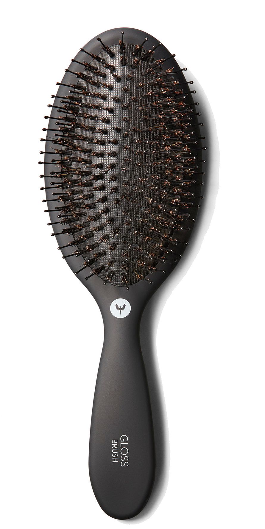 En eksklusiv hårbørste, der kombinerer ultrafleksible børstepigge med ægte vildsvinehår. Denne unikke sammensætning fordeler hårets naturlige olier fra hovedbunden ud i hele hårets længde, hvilket giver et stærkere og mere glansfuld hår.