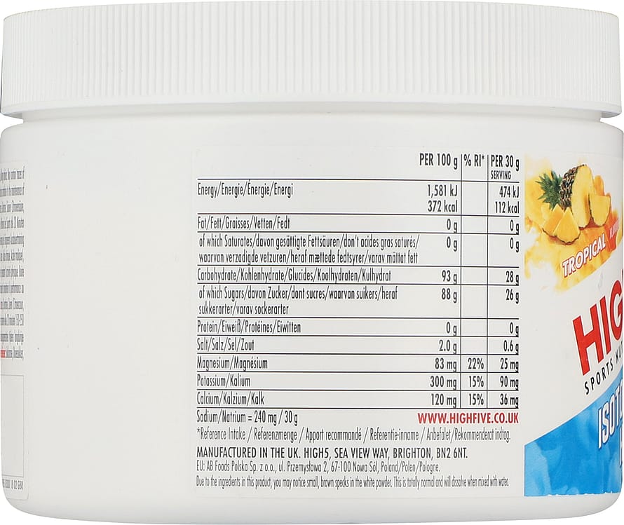 High5 Isotonisk Hydration er et pulver til fremstilling af drikkeblanding, designet til længerevarende træning. Den indeholder en hurtigt optagelig kulhydratblanding, samt elektrolytter, som kroppen mister gennem sved – og derfor har brug for at få genopfyldt. Kulhydrat-elektrolyt-opløsninger bidrager til at vedligeholde udholdenheds præstation under længerevarende træning og øger optagelsen af vand under fysisk træning.