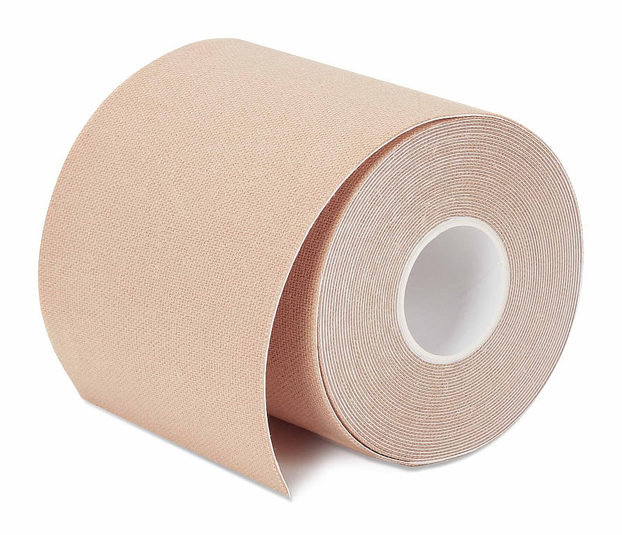 - Brug: Sørg for, at huden er ren, tør og fri for hudfedt eller lotion. Mål og klip den perfekte længde Body Contour Tape, som passer til brystets størrelse og den valgte beklædning. Fjern beskyttelsen på bagsiden af tapen, og hold brystet i den ønskede position. Påsæt tapen nedefra og op, udjævn og stræk tapen undervejs. Brug mere tape, hvis det er nødvendigt. Hvis du sætter tapen over brystvorten, skal du først påsætte en beskytter.