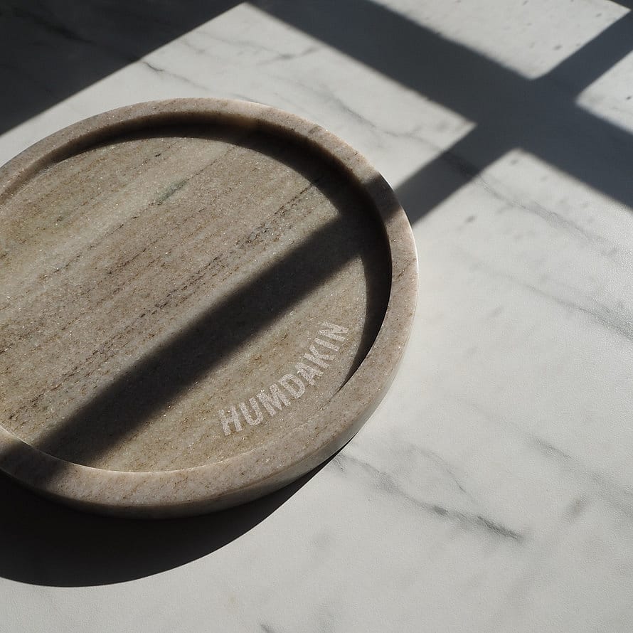Brug dette smukke runde marmorbakke i brun marmor til styling i stue, køkken eller bad. Lad din yndlingshånd- eller hudpleje stå fremme på bakken og pynte.