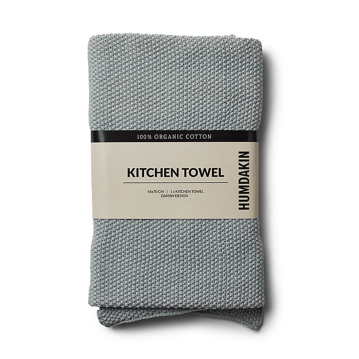 Strikket køkkenhåndklæde i 100% økologisk bomuld. Blødt køkkenhåndklæde, der pynter i ethvert køkken og som samtidig har en effektiv sugeevne.