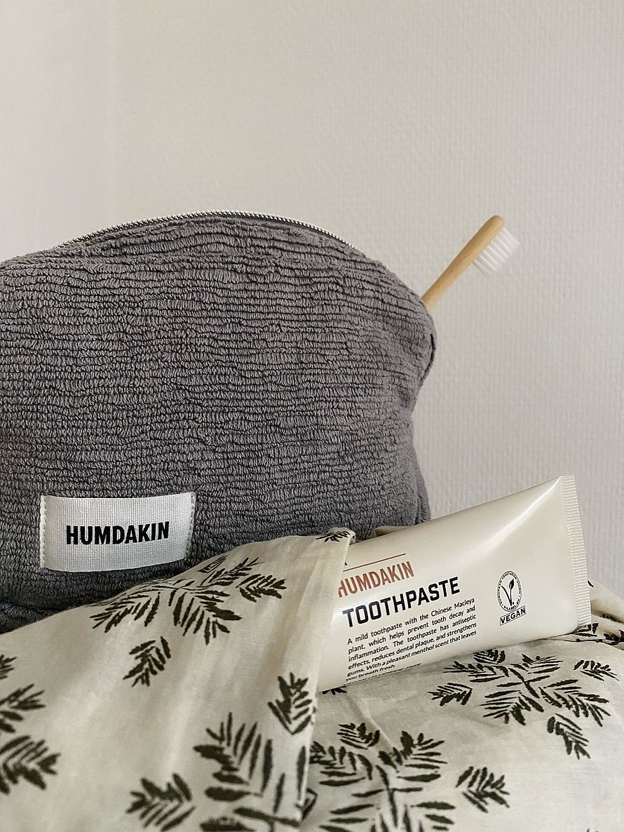 Denne meget brugbare og luksuriøse toilettaske lavet i økologisk bomuldsfroté er perfekt til dine pleje produkter.