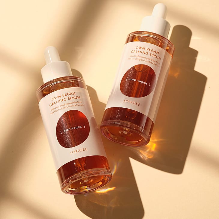 Hyggees veganske produktlinje er lavet med miljøet for øje. Pakkerne er lavet af genanvendt PCR-plast med etiketter, der let falder af i vandet, for at muliggøre let genbrug.