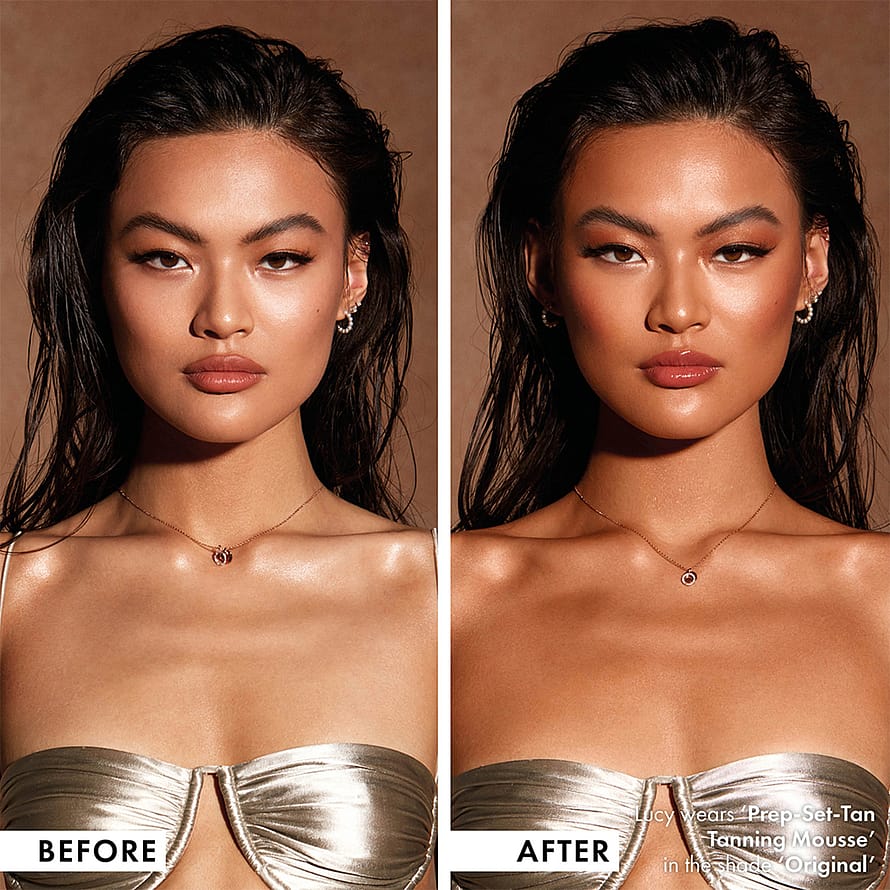 Vores Prep-Set-Tan Mousse er din billet til en naturlig solbrun glød året rundt. Denne revolutionerende tanning mousse er udviklet til at få din krop til at stråle i en lækker, solkysset nuance, der ser naturlig ud, holder længe og er virkelig nem at påføre. Den fås i to nuancer - ORIGINAL for et flatterende, solkysset look og GLOW for den dybeste, mest luksuriøse bronze - og den opfylder alle dine behov for smuk tan OG er tilsat vores karakteristiske glitrende perlemorspigmenter, der giver øjeblikkelig glød, mens din kulør udvikler sig! Uanset om du drømmer om et subtilt strejf af farve eller en fyldig, strandklar kulør, så har vi det, du behøver.