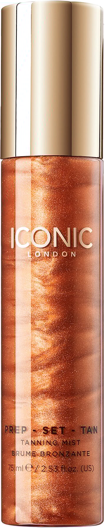 ICONIC's bedst sælgende shimmer-spritz, Prep-Set-Glow, har nu en søsterspray til sommertiden, Prep-Set-TAN, og den er tilsat de bedste solbruningsmidler for at give dig din bedste gyldne, glødende solbrændthed nogensinde. Dette er en øjeblikkelig on-the-glow nødvendighed til både hjemmeferien OG solskinsrejsen. Prep-Set-Tan er beriget med hyaluronsyre, hvilket giver dig en næret, sundt udseende og jævn solbrændthed, der holder i længere tid uden at udtørre din hud eller sætte sig fast på ankler, håndled eller albuer. Den er tilsat en stemningsfuld, tropisk aroma, der ikke blot maskerer den typiske solbrændte lugt, men også transporterer dig til et fjernt paradis. Indeholder et kompleks af vitaminerne A, E og F, der er kendt for deres plejende og antioxidante egenskaber, og som hjælper huden med at føle sig næret. Med tilsat agurk og kamilleekstrakt hjælper din hud med at føle sig frisk og revitaliseret. Der er TO glitrende, smukke nuancer at vælge imellem - ORIGINAL og GLOW - velegnet til alle hudtoner. Denne bruningsspray, som er unik for ICONIC London, giver huden en øjeblikkelig, blødt glimtende effekt. Nuance ORIGINAL udvikler sig til en subtil, solkysset effekt. Shade GLOW udvikler sig til en mere fyldig, varmere brun farve, der giver dybde til din teint.