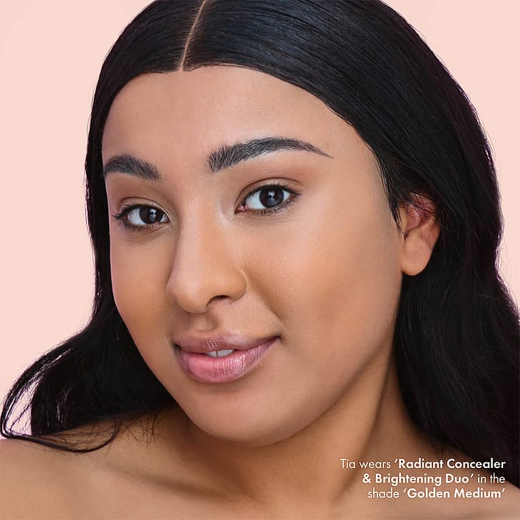 Brug den faste side til at lysne og løfte området under øjnene og den medium-heldækkende, flydende concealer-side til at camouflere ufuldkommenheder.
