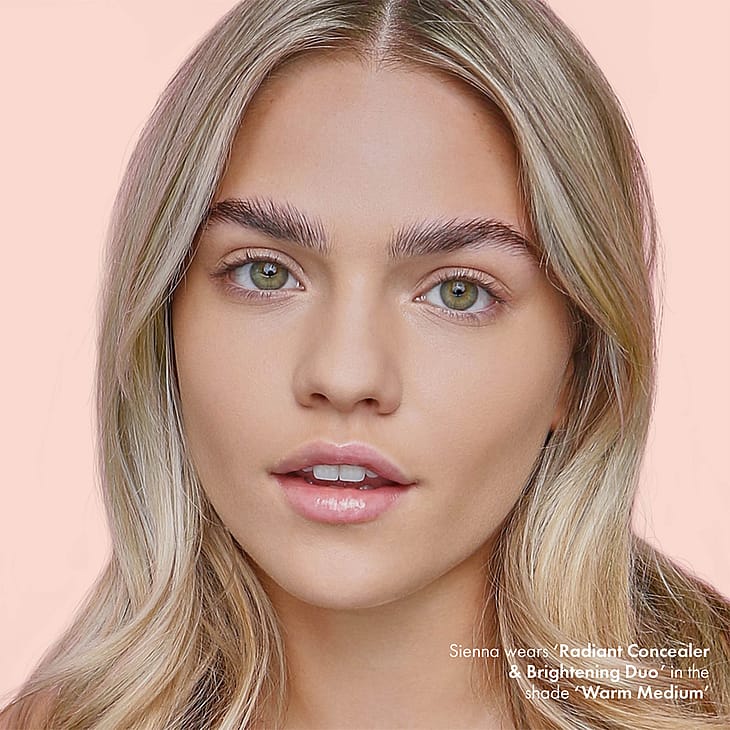 Brug den faste side til at lysne og løfte området under øjnene og den medium-heldækkende, flydende concealer-side til at camouflere ufuldkommenheder.