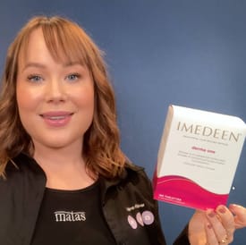 Med blot 2 tabletter dagligt bidrager IMEDEEN Derma One til at bevare din huds glød og udseende efter bare 90 dage.