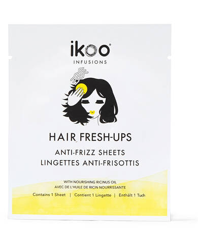 Hold håret rent og friskt med ikoo Hair Fresh- Ups – Anti-Frizz Sheets. Puden er olieabsor- berende og beriget med den nærende ricinusolie, som effektivt suger fedtet fra hår- rødderne op. ikoo Hair Fresh-Ups er desuden ideelle at have med på farten, til at tæmme håret, når det kruser i fugtigt vejr eller andet. Sådan kan du let vedligeholde din frisure hen over dagen og aftenen. Værdi 9,95