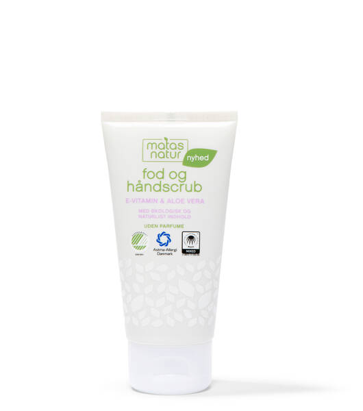 Fod- og Håndscrub fra Matas’ naturserie er en cremet skrub med fine, eksfolierende lavasten, der sliber de døde hudceller af og sikrer en blød, glat og smidig hud. Skrubben indeholder allantoin, som beskytter huden mod irritation, samt glycerin der tilfører huden masser af fugt. Produktet er desuden parfumefrit, og kan derfor anvendes af alle. Værdi 74,95