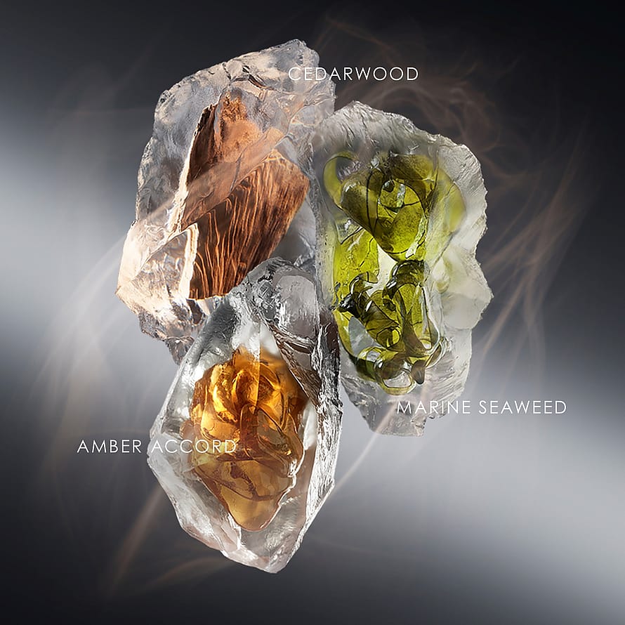Fremkalder bevægelse fra hav til land og balancerer rå naturelementer med urban elegance. Bygger på to kontrastfulde poler: en frisk saltakkord fra havet og varme, røgede trænoter fra jorden. Resultatet er en sensuel, langvarig duft til den uafhængige mand, der bevæger sig frit mellem kyst og by.