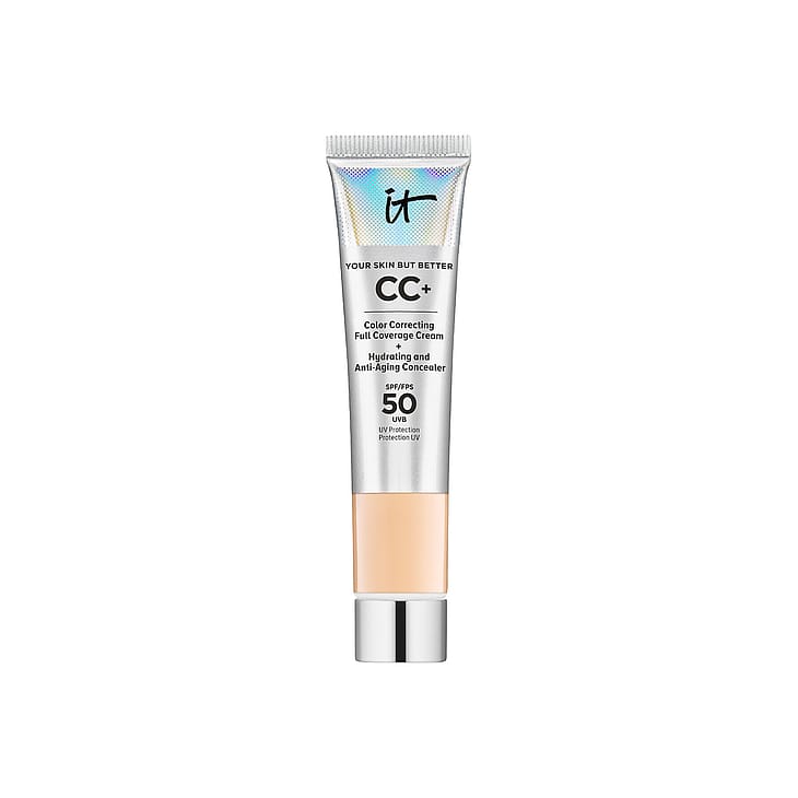 IT Cosmetics Your Skin But Better CC+ Cream SPF 50+ er en fuldt dækkende foundation, der korrigerer din hudtone og mindsker synligheden af fine linjer, samtidig med at den hydrerer huden.