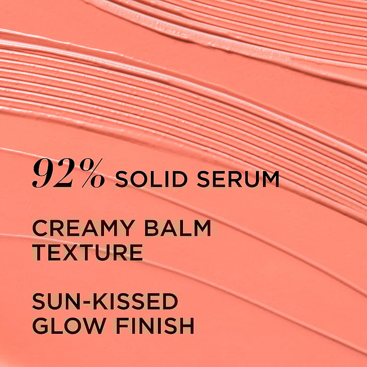 Vores 92 % faste serum-hudplejebase med hyaluronsyre, peptider og E-vitamin giver 24 timers fugt og kombinerer blush- og bronzerpigmenter for en naturlig, strålende finish. Din hudplejende blush smelter ubesværet ind i huden, udglatter og giver fylde, så ansigtet igen får dimensioner og løft i 3 solkyssede nuancer til alle hudtoner.