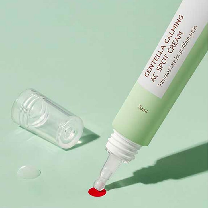 Spot creme med AHA, BHA, PHA for skånsom eksfoliering og centella asiatica for at lindre irriteret hud.