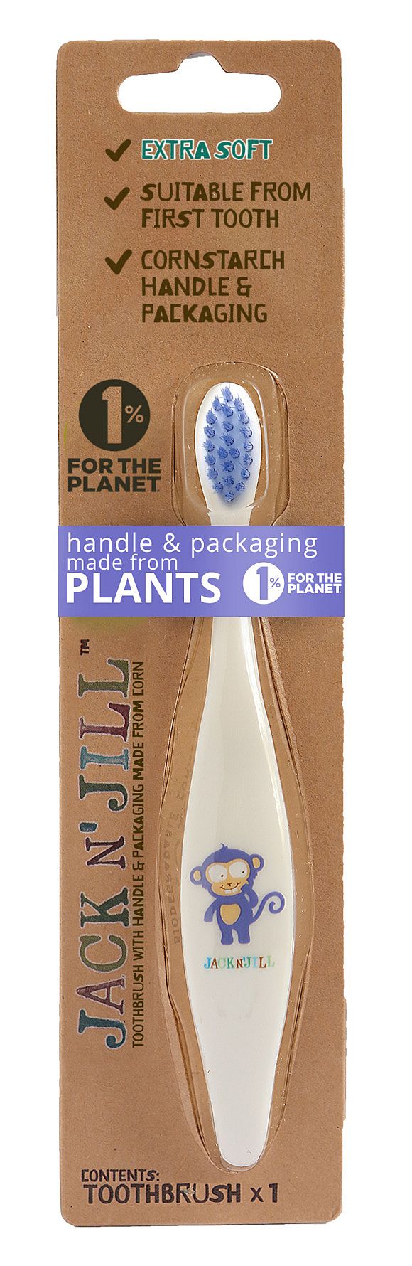 Håndtaget på børsten er lavet af majsstivelse med genanvendeligt nylon. Det betyder at den er bionedbrydelig. Det er ekstra bløde børster.