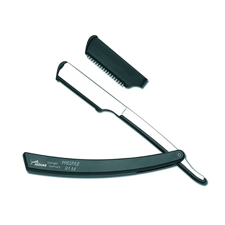 Jaguar R1 M har en barberklingekniv med et metalgreb.