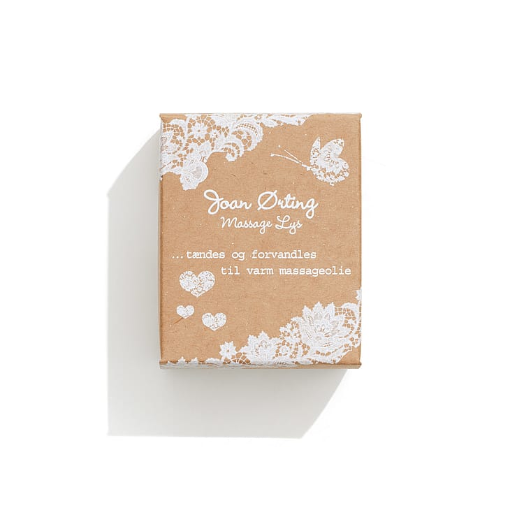 Sådan gør du: Tænd lyset og lad det brænde ca. 15 minutter, indtil olien bliver flydende. Sluk vægen og hæld derefter den varme, flydende olie ud over kroppen. Olien bliver ikke brændende varm, men føles forførende varm på din partners hud. Massagelyset efterlader huden blød, uden at klistre. Produktet består af shea butter, bivoks og E-vitamin.
