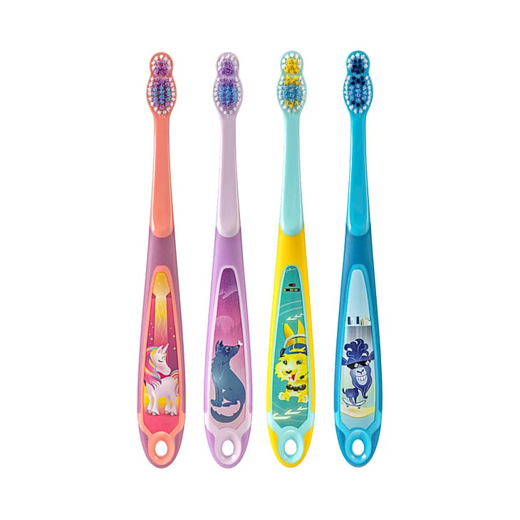 Skaft, hoved, børste og design er alle skræddersyede til at sikre, at du har de bedste vilkår til, at få indarbejdet gode plejende tandvaner fra allerførste tand.