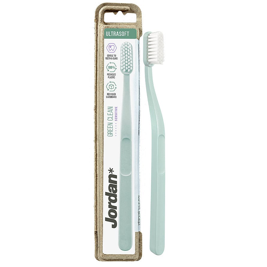 Jordan Green Clean Ultrasoft tandbørste Jordan Green Clean Ultrasoft er en tandbørste i 100% genanvendt plastik, med 37% biobaserede børster og pakket i 100% genanvendt papemballage. Håndtaget er ergonomisk udformet og børsterne er 0,02 mm tynde og tilspidsede, så de er ekstra blide mod tænder og gummer. Jordan Green Clean Ultrasoft fås 4 flotte assorterede farver. Og kan ligeledes fås i Soft og Medium. Tro mod de skandinaviske designprincipper har tandbørsten et moderne og minimalistisk udseende, hvor kun de mest nødvendige materialer er brugt for at sikre en behagelig og komfortabel børstning. Med Jordan Green Clean er intet overladt til tilfældighederne og du skal dermed hverken gå på kompromis med miljø, funktionalitet eller æstetik - Jordan Green Clean er udviklet med dig og miljøet i tankerne. Bemærk: Leveres i assorteret farver.