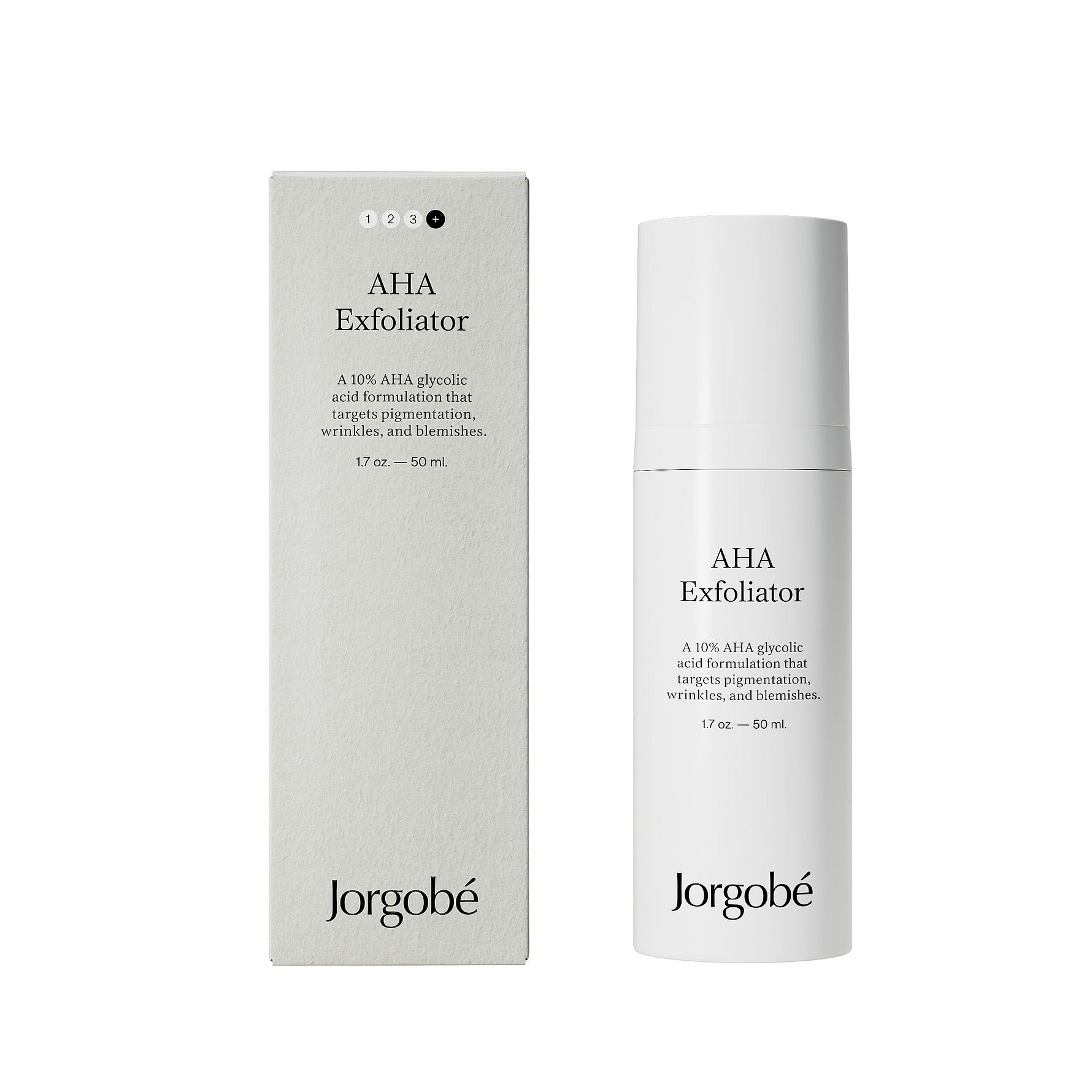 Reducer pigmenteringer og rynker med Jorgobé AHA Exfoliator - en effektiv eksfoliering, som indeholder 10 % glykolsyre (AHA-syre). Glykolsyren fremmer hudens cellefornyelse ved at fjerne døde hudceller, mens betain fugter og giver en mere jævn hudtone for en glattere hud. Denne eksfoliering er perfekt til dig, som ønsker at modvirke og minimere pigmenteringer og en hud, der ser trist ud.
