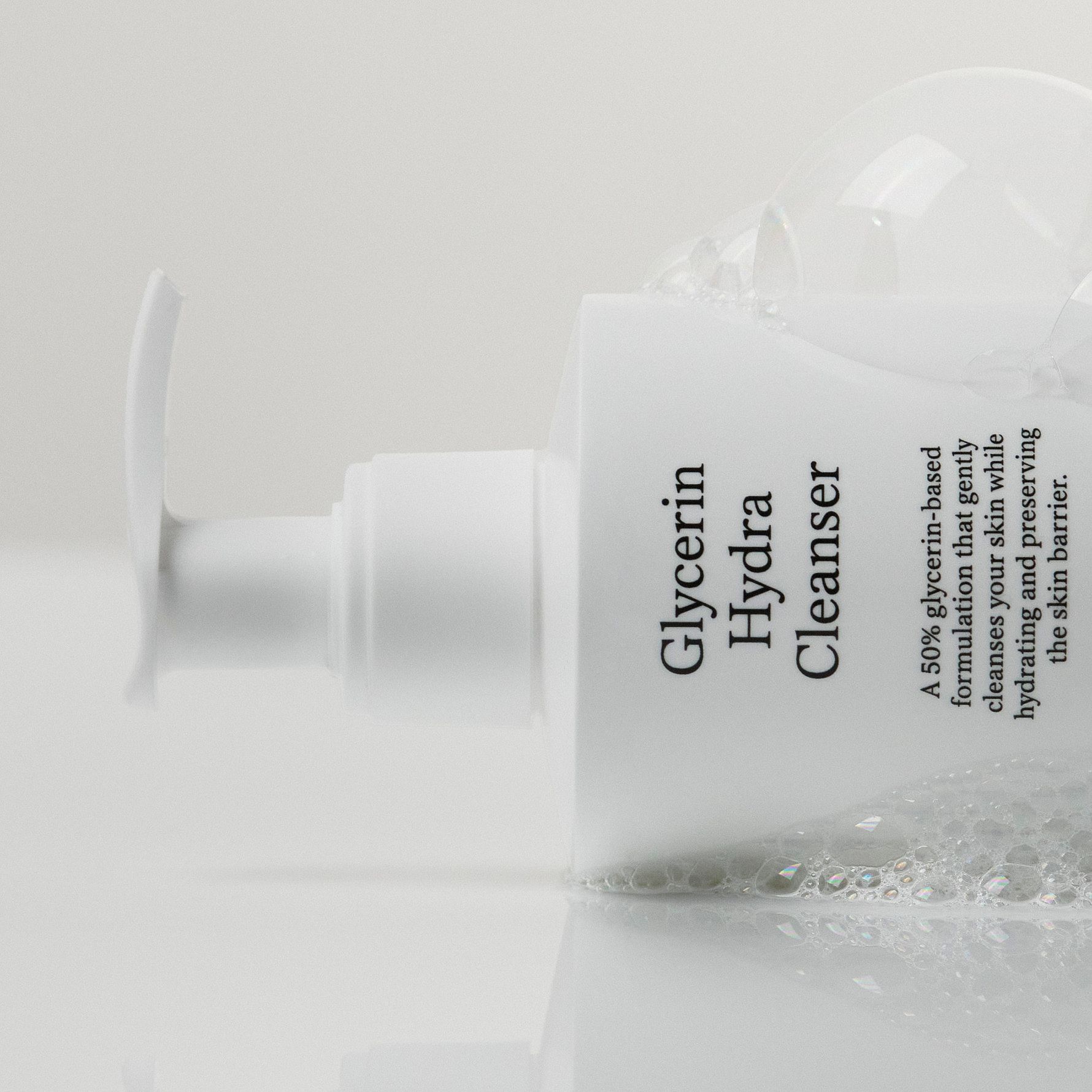 Rens og fugt huden med Glycerin Hydra Cleanser - en skånsom ansigtsrens som styrker hudens naturlige barriere og fugtbalance.