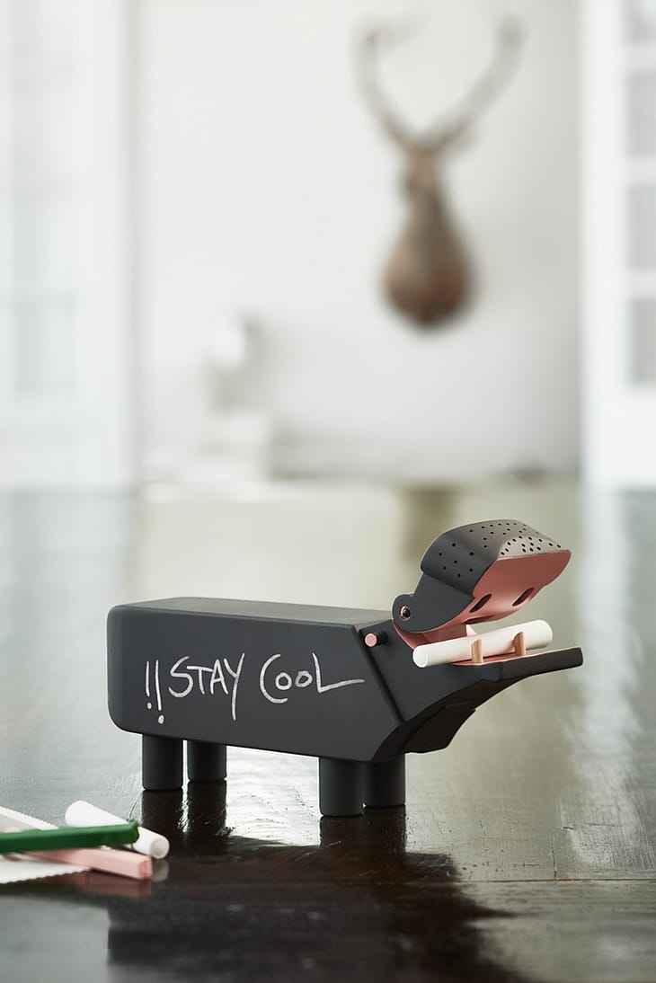 Flodhesten er lavet af bøg og belagt med sort tavlemaling, så du kan skrive beskeder, små notater eller bruge den som huskeliste på skrivebordet. Flodhesten er ca. 2 cm højere og bredere end den nuværende i sortimentet, hvilket gør den let at tegne og skrive på.