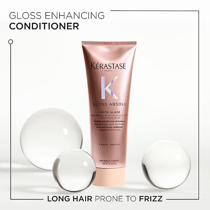 TRÆD IND I GLANSENS VERDEN. Insta Glaze fra Kérastase er en glansgivende balsam til langt hår med tendens til krus. Den indeholder hyaluronsyre, glykolsyre og vildroseolie for at give fortryllende, bouncy og glansfuldt hår.