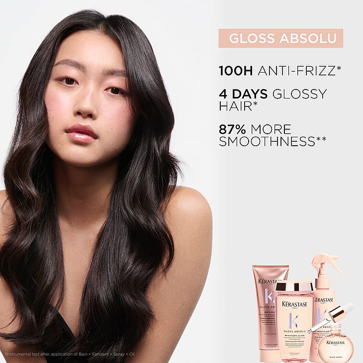 Hemmeligheden bag glossy hår? Den perfekte ligning af Renhed + Pleje + Hårstråenes struktur. For at maksimere resultaterne, kombiner med resten af Gloss Absolu-serien. Start med Bain Hydra-Glaze shampoo for ultimativ ren glans. Tilføj pleje med Insta Glaze Fondant balsam. For en glat og glansfuld finish, brug Anti-Frizz glaze milk før styling og derefter Glaze Drops hårolie for afsluttende glans.