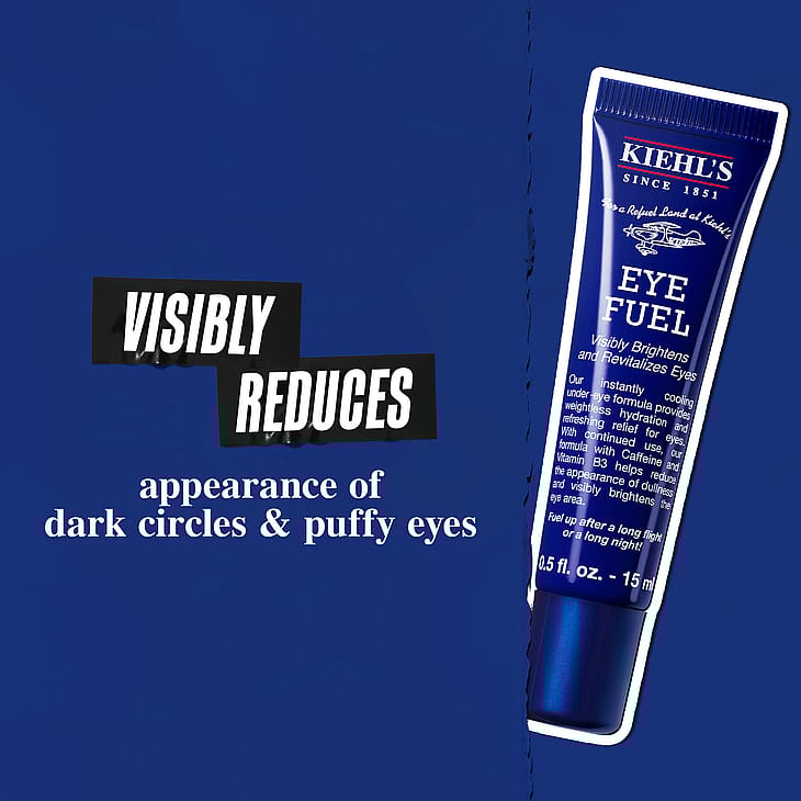 Kiehl's Eye Fuel er en øjencreme til mænd, der henvender sig til alle hudtyper. Øjencremen indeholder koffein og vitamin B3, som hjælper med at reducere mørke rander og hævede øjne ved kontinuerlig brug.