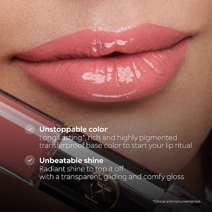 Langtidsholdbar 2-i-1 læbefarve med glans.
