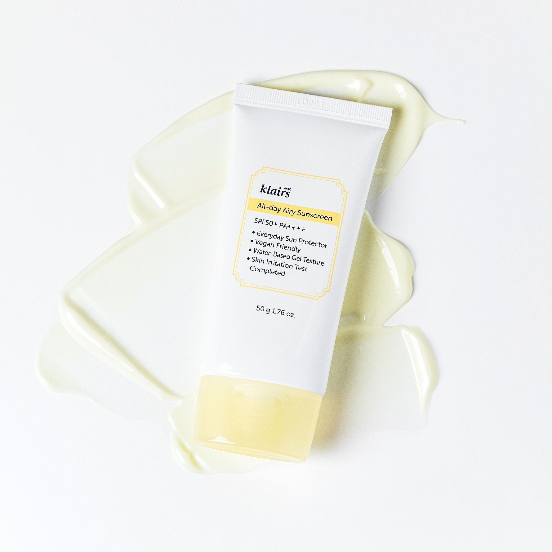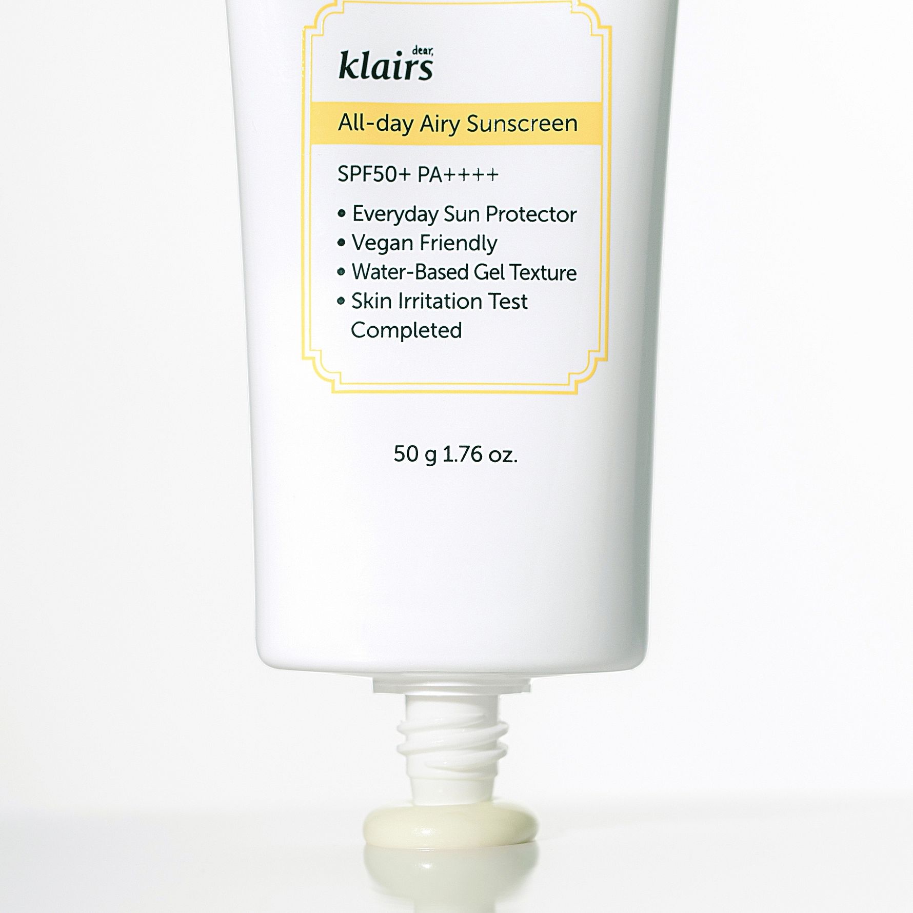 All-Day Airy Sunscreen er en fugtgivende fugtighedscreme med SPF 50+ PA++++, der beskytter din hud mod UV-stråler uden at efterlade en hvid finish.