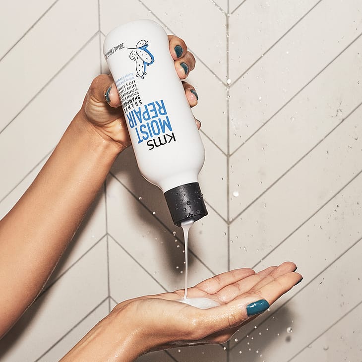 Reparer beskadigede hårstrukturer* med KMS MoistRepair Shampoo.