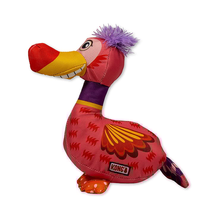Floppy fødder og vinger øger rystens tilfredshed, mens den skøre blanding af teksturer tilføjer spænding til denne yndige ven, hvis hals tillader hunde i alle størrelser at gribe og lege.