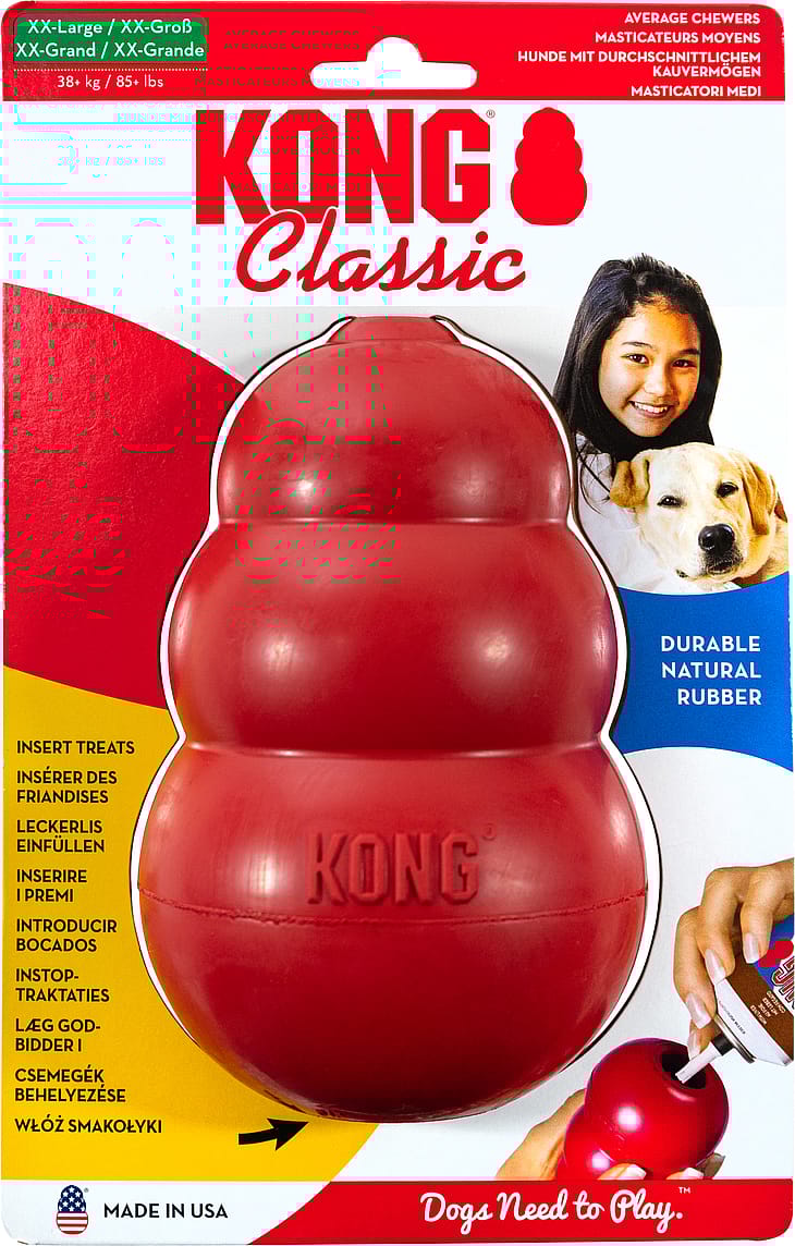 KONG Classic er guldstandarden for hundelegetøj og er blevet basis for hunde over hele verden i over fyrre år.
