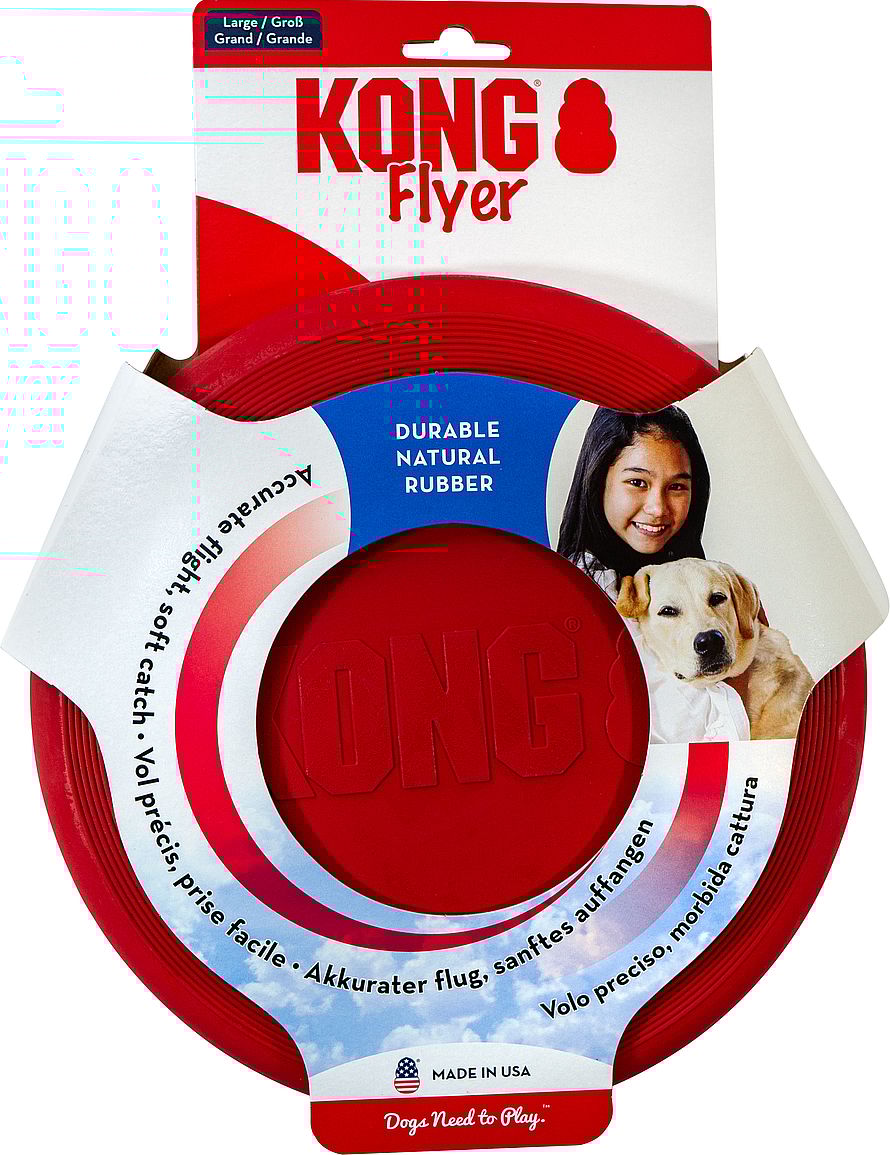 KONG Classic Flyer er lavet til at hente. Den er lavet af slidstærkt KONG Classic-gummi, som giver mulighed for en tilgivende fangst, plus materialet leverer et dynamisk rebound, hvis din hund går glip af det første kast.